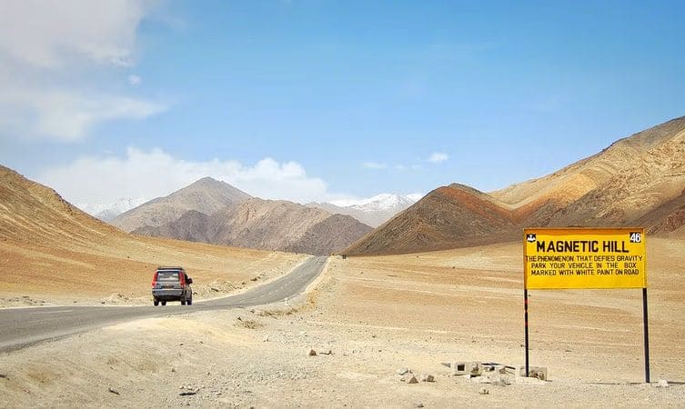 The famous Magnetic Hill of Ladakh is a cyclops hill, a place where vehicles seem to have defied the force of gravity and move upwards when parked at a particular marked location here. Located on the Leh-Kargil-Baltic National Highway, this place remains a mystery even today, as many tourists are awestruck to witness the magical experience.